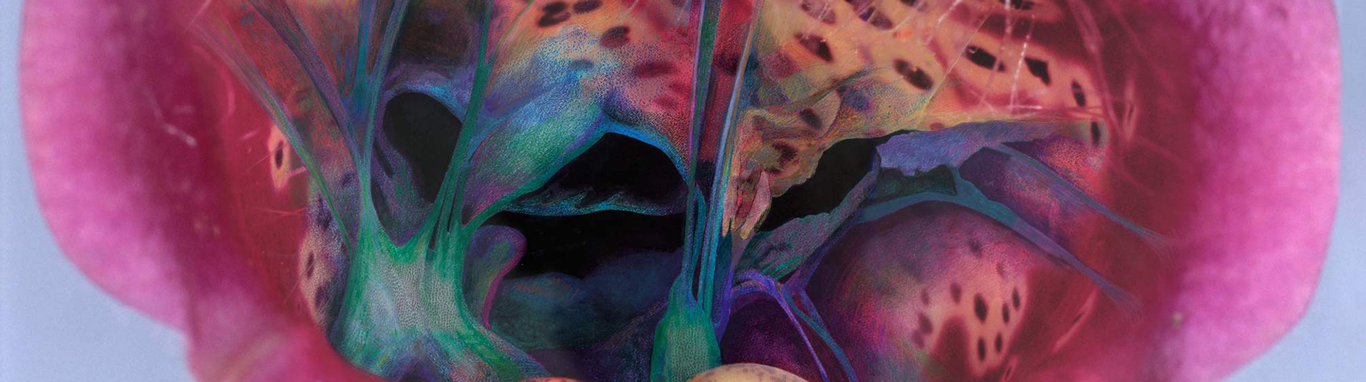 Pauline produces mainly two dimensional work, including painting, mixed media and print. Images are created through the use of micrographs via digital techniques up to large – format in scale, and also as light boxes. The work reflects upon the interdependence of life forms on the planet and our place within this.